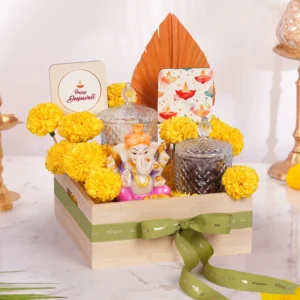 Ans: The best corporate gifts for Diwali include personalised Diwali Joy hampers, assorted premium cookies, Happy Diwali cupcakes, or a Ganesha Lakshmi Saraswati idol in a luxury box, offering both elegance and festive cheer.