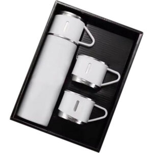 Family Set of Vacuum Flask & Two Cups – White
