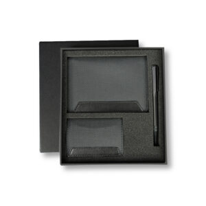 Executive Set of Passport Cover, Name Card Holder and Metal Pen – Black
