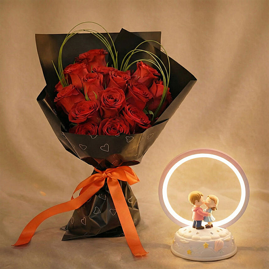 15 Red Roses Bouquet for Valentine's Day n Led Love Lamp