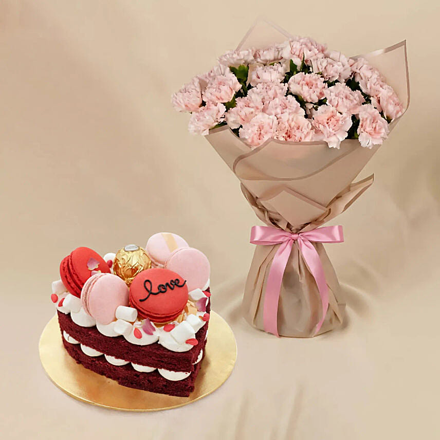 24 Carnations love Bouquet with Cake for Vday
