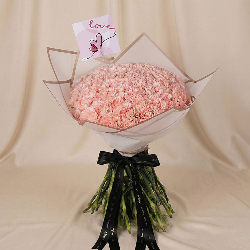 This voluminous carnation bouquet conveys warmth, tenderness, and everlasting love, making it a perfect statement gift for someone truly special.