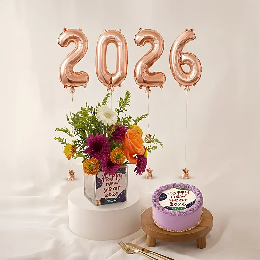 With its vibrant flowers, rich red velvet cake, premium chocolates, and striking 2026 balloons, this combo is designed to delight the senses and set the perfect tone for a sweet, prosperous, and joyful New Year.
