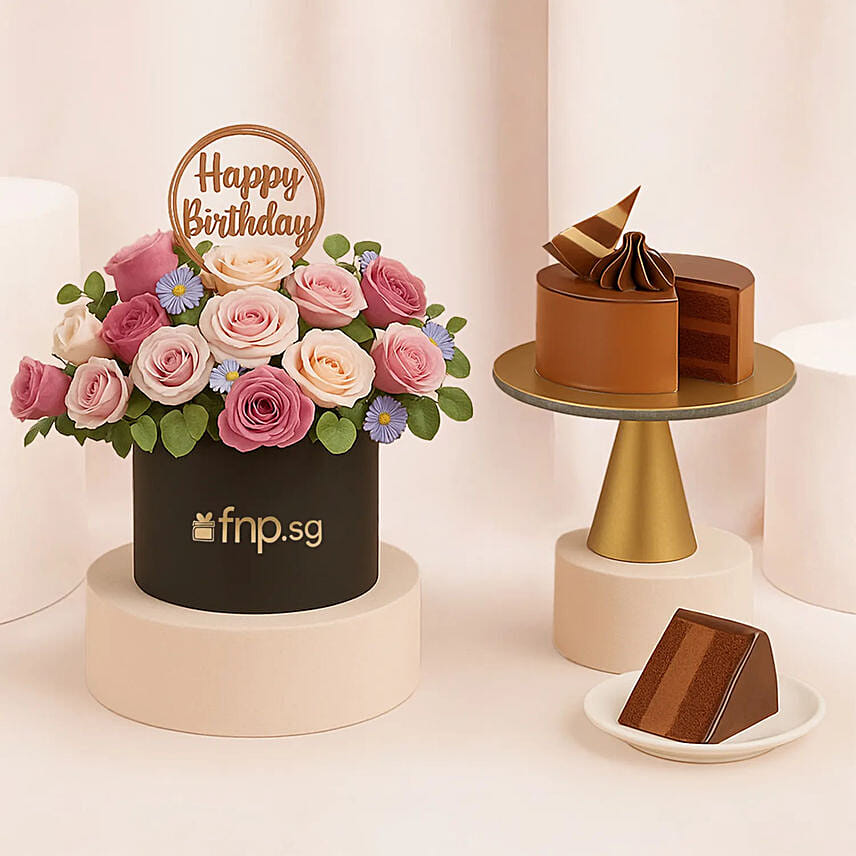 - Flower & Dessert Lovers:Combines lush blooms with a rich chocolate cake.