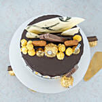 • This customised cake is frosted with White and Black butter cream, Ferrero Roches, Gold-dusted Kit Kat, Lotus Biscoff, Gold-dusted Oreos, Popcorn, Gold Hershey's Kisses, White Marbled Chocolate Shards, Black Chocolate Drips and Edible Gold Leaf