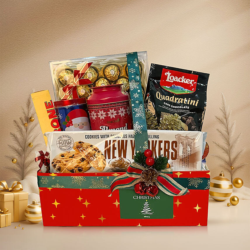Packed with premium chocolates and festive presentation, the Classic Chocolate Hamper brings warmth, joy, and delicious indulgence to every Christmas moment.