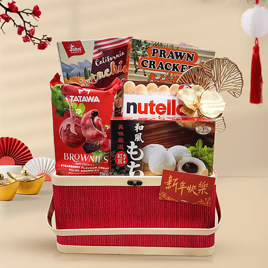Thoughtfully arranged in a classic red base with elegant festive accents, this hamper blends traditional flavours with modern favourites-making it a meaningful gift to celebrate new beginnings, happiness, and lasting fortune.