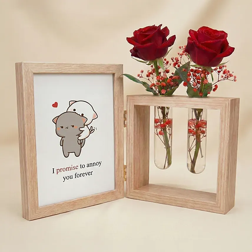 This adorable frame with fresh red roses adds warmth, humour, and romance to any space, making it a perfect reminder of love that’s sweet, playful, and meant to last forever.