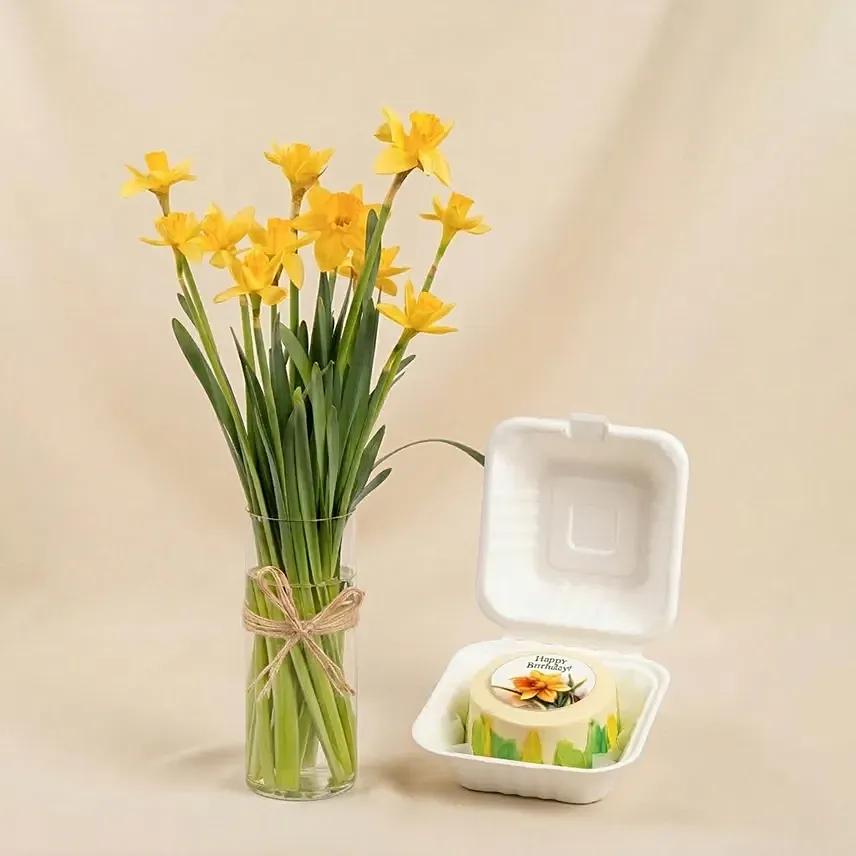 Daffodils Arrangement with Cake