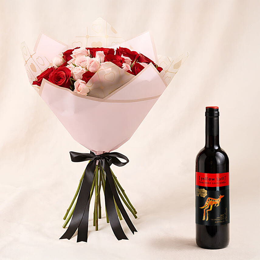 Make a grand romantic gesture with this stunning bouquet of 14 red roses and 6 pink spray roses, meticulously wrapped in blush pink paper and tied with an elegant black satin ribbon. Designed to capture both passion and admiration, this bouquet is the ideal choice for anniversaries, 520 Day, Valentine’s Day, or simply reminding someone how much you love them.