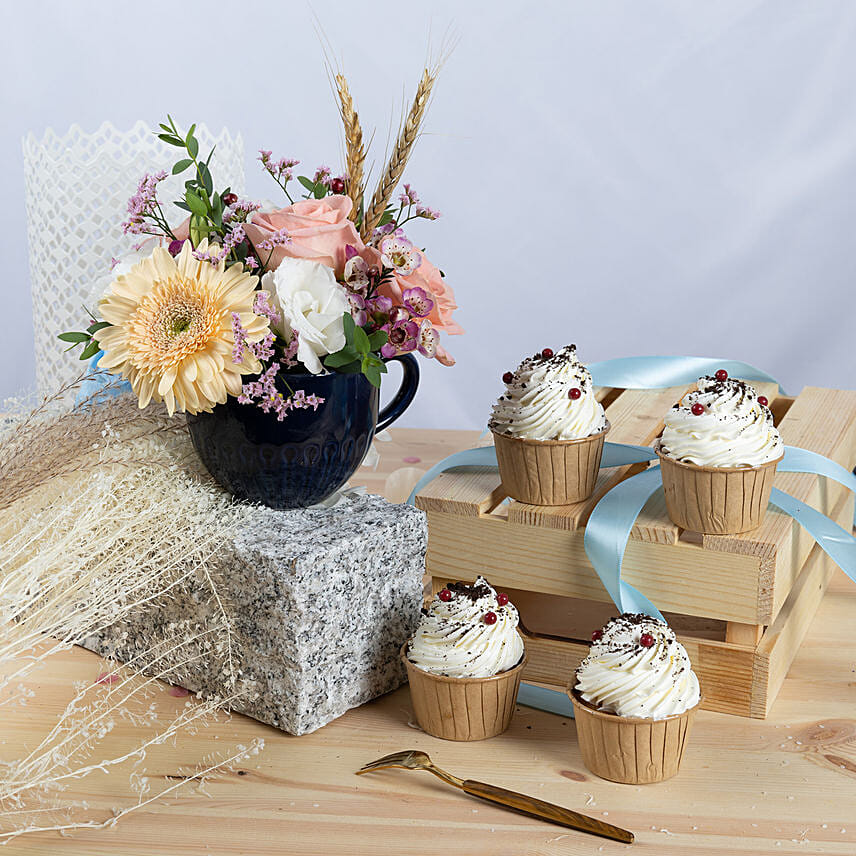 Flowers arrangment with Vanilla Cupcakes