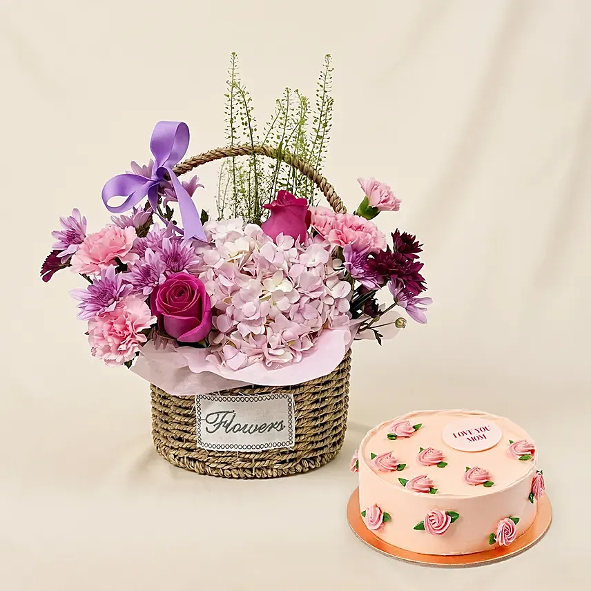 Flowers Gift Basket and Cake