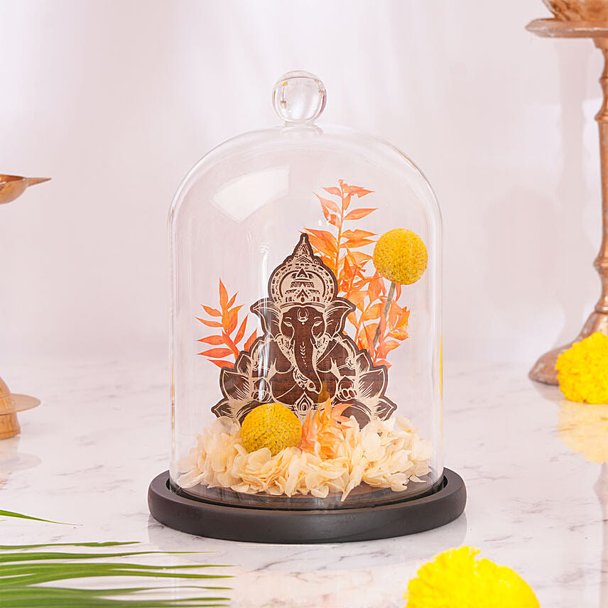 • 1 Ganesha Cutout Arranged in a Glass Dome