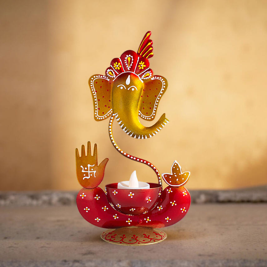 Introducing our exquisite handcrafted Ganesha showpiece, in gleaming metal adorned with regal blue and gold hues. This unique gift is a harmonious blend of artistry and spirituality, ideal for those who appreciate the divine and the aesthetic. Whether displayed in their home or given as a heartfelt gesture, it symbolises blessings, wisdom, and the beauty of devotion.