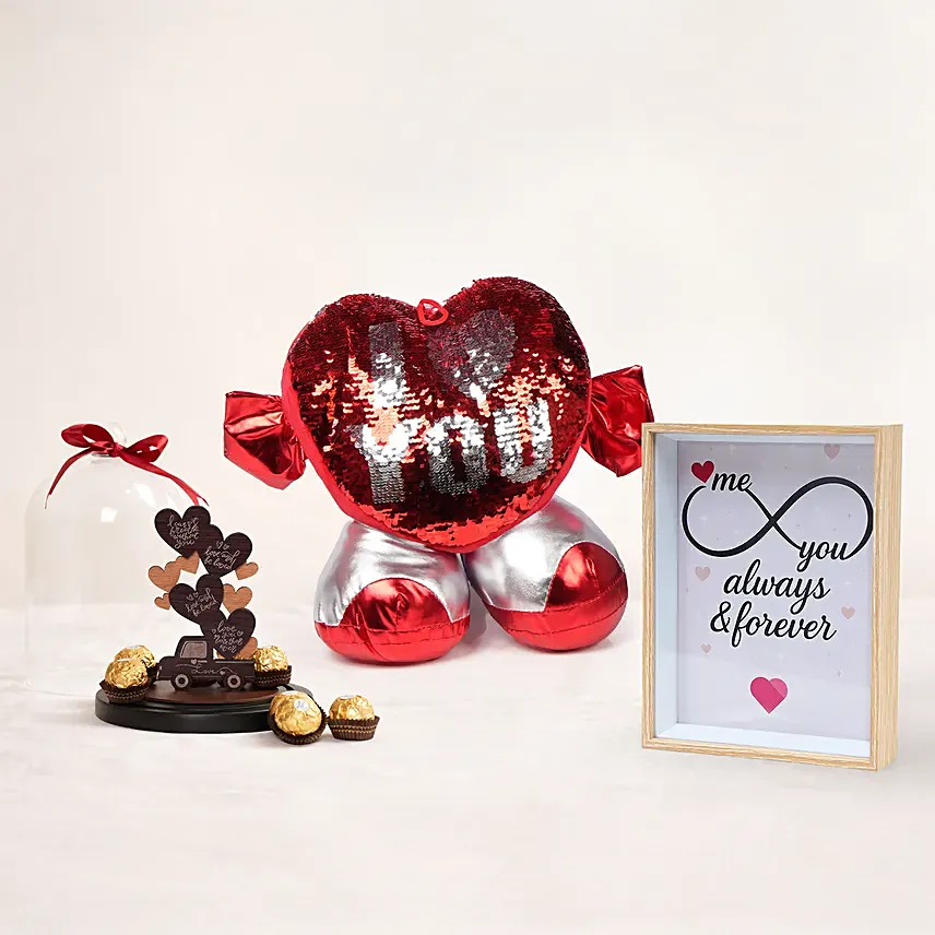 Celebrate love as a beautiful journey with the Journey Of Love Combo, a thoughtfully curated Valentine’s gift that blends sparkle, sweetness, and sentiment. Each element comes together to tell a story of togetherness, memories, and everlasting affection.