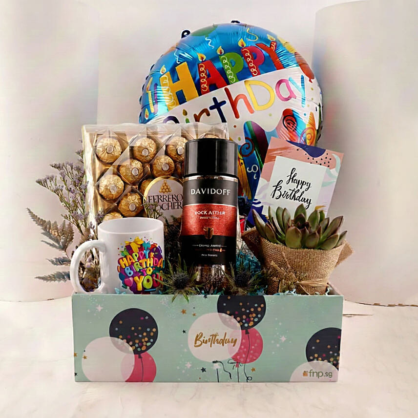Bright, cheerful, and full of delightful surprises, this birthday hamper is thoughtfully curated to make celebrations extra special. From indulgent chocolates and aromatic coffee to a keepsake mug and a charming succulent, it’s a perfect blend of joy, warmth, and festive cheer.