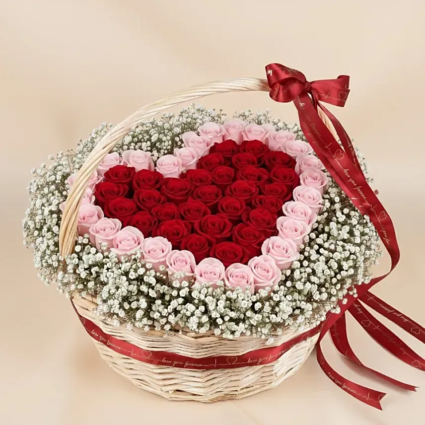 Luxury Heart Rose Basket for Valentines