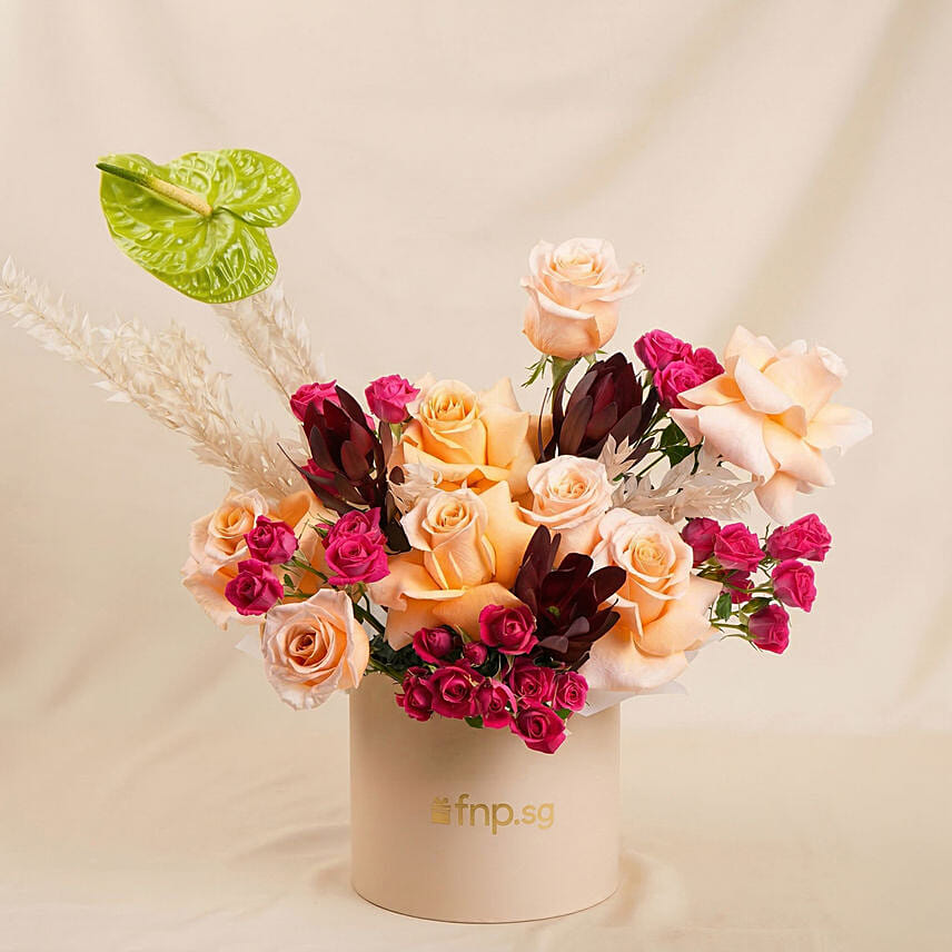 Each flower whispers refinement and emotion, blending soft warmth with bold allure. The unique contrast of textures and tones creates a bouquet that feels both timeless and modern. Whether it’s a gesture of appreciation, love, or celebration, this gift stands as a reminder that true beauty lies in balance and grace.