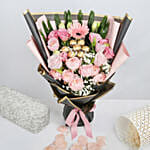 Delight someone special with this chocolates and flower bouquet, beautifully combining mixed flowers, artfully paired with Ferrero Rocher chocolates—a charming and indulgent gift that fuses floral elegance with sweet decadence in one unforgettable arrangement. Perfect for celebrating any occasion like birthday, graduation, anniversaries, or simply to say I am sorry, I love you & more.