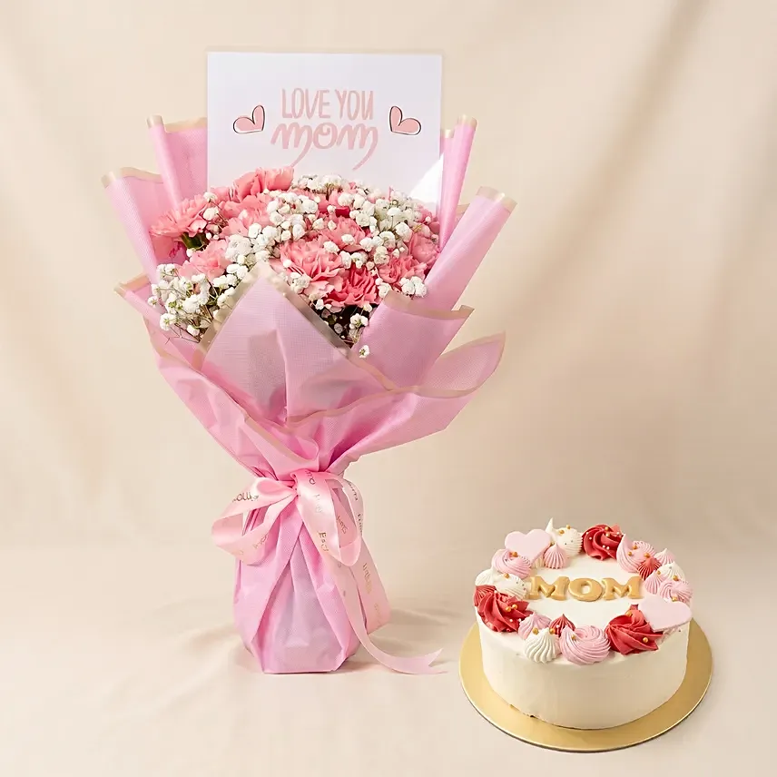 Mothers Love Pink Carnations Bouquet & Cake Combos