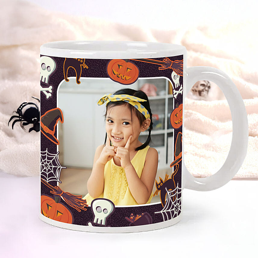 Make your Halloween mornings extra special with this Personalised Halloween Theme Mug! Designed with spooky fun illustrations of pumpkins, witches, spiders, and skulls, this mug lets you add your own photo for a unique festive touch. Perfect for sipping your favorite hot beverage, it brings warmth and personality to every Halloween celebration.