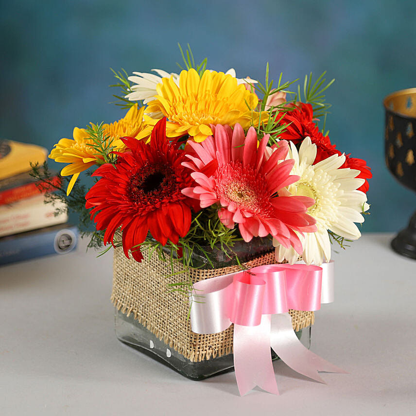 • Beautifully arranged square glass vase- 4 x 4 inches