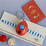 Celebrate the golden bond between siblings with this Keychain Rakhi featuring an inbuilt Rock-Paper-Scissors toy, paired with a pack of KitKat chocolate, perfect for the sweet-toothed little one. This Toy Rakhi blends tradition with fun, adding excitement to Raksha Bandhan. Crafted with vibrant colours and durable materials, it promises giggles and playtime. Complemented with delicious KitKat chocolate, it adds a sweet treat to the festivities, making Raksha Bandhan even more delightful. Paired with roli and chawal, it is a perfect companion for the religious ceremony, ensuring a celebration filled with joy and sweetness.