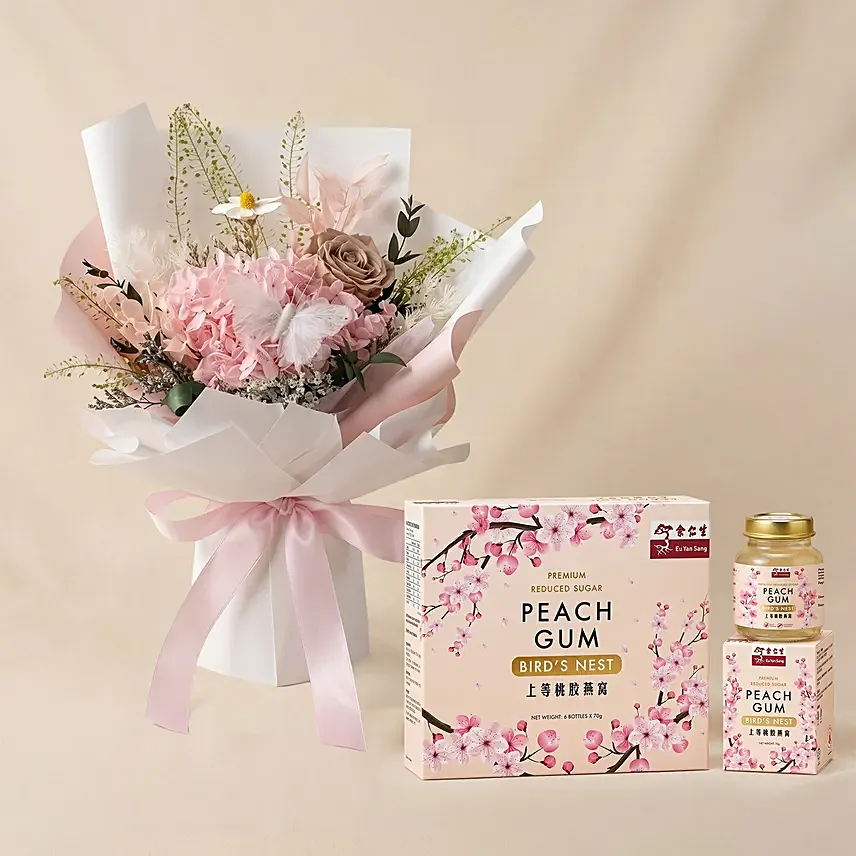 Preserved Hydrangea Bouquet with Birdnest Peach Gum