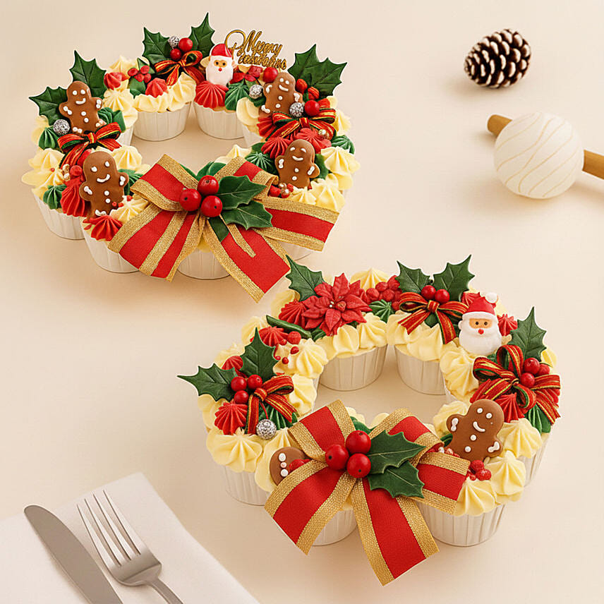 Celebrate the holidays with our Pull Apart Christmas Wreath Cupcakes set of 2 -an adorable and festive set of 7 cupcakes arranged to form a beautiful Christmas wreath.
