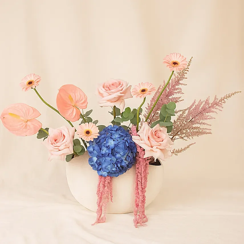 Rose Gerbera & Hydrangea in Ceramic Vase