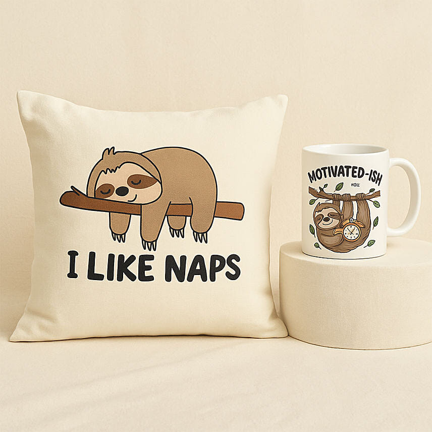 Sloth Life Cushion & Mug Gift Set is the ultimate combo for anyone who takes relaxation seriously. Featuring an adorably sleepy sloth design, this set perfectly captures the cozy charm of slow living - ideal for lazy mornings, coffee breaks, or nap time snuggles. The soft printed cushion and matching ceramic mug make it a comforting and humorous gift for anyone who believes that rest is a lifestyle!