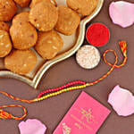 Sneh Red and Yellow Bead Rakhi with Besan laddoo