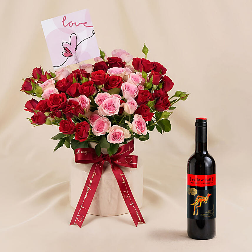 Spray Roses in Premium Ceramic Vase with Wine