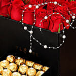 Stylish Box Of Red Flowers with Ferrero Chocolates