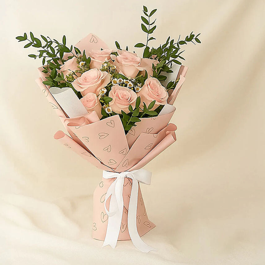 Gracefully curated with Titanic roses, dainty chamomile blooms, and refreshing eucalyptus foliage, this hand tied bouquet captures timeless elegance and gentle charm. Ideal for birthdays, anniversaries, congratulations, or thoughtful gestures, the mix of delicate whites and blush toned roses makes it perfect for any heartfelt occasion. Wrapped beautifully and delivered fresh, this bouquet brings a sense of calm sophistication to your gifting. Whether youre saying “I care” or “I’m thinking of you”, let these blooms speak volumes.