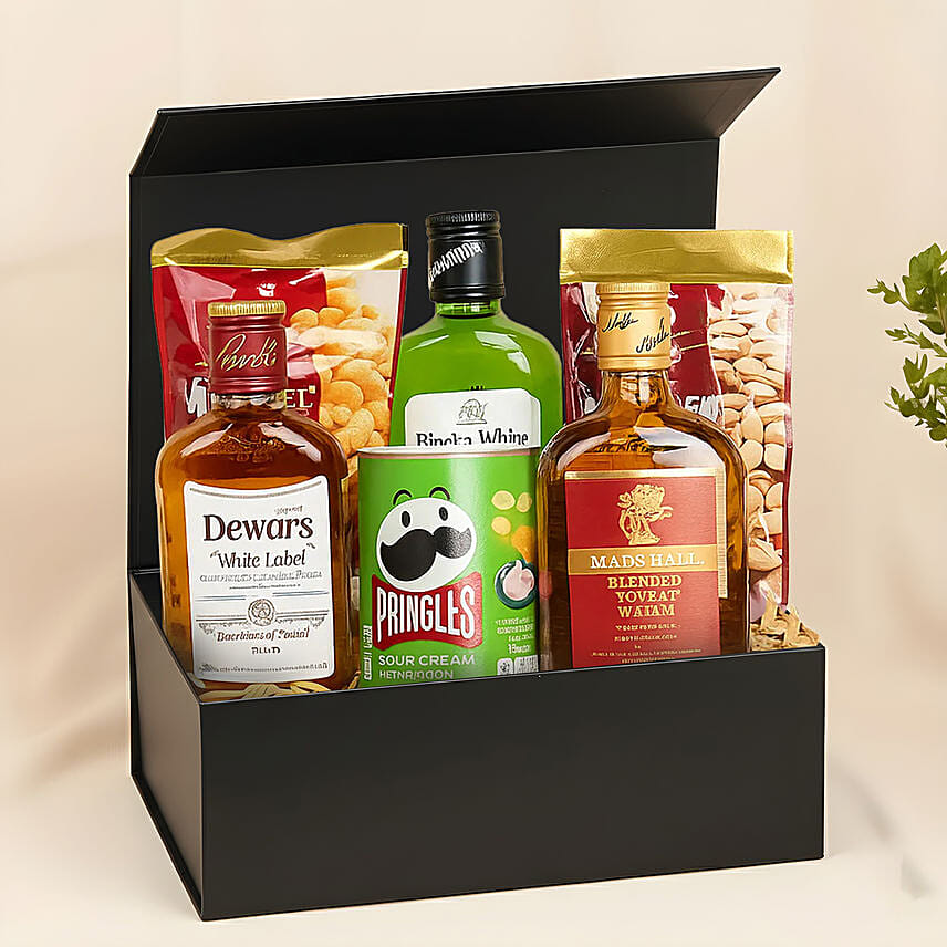 This bold and contemporary whisky hamper is crafted for those who appreciate refined spirits paired with classic savoury snacks. Sleekly presented in a premium black foldable box, it makes a confident statement gift for celebrations, milestones, or corporate occasions.
