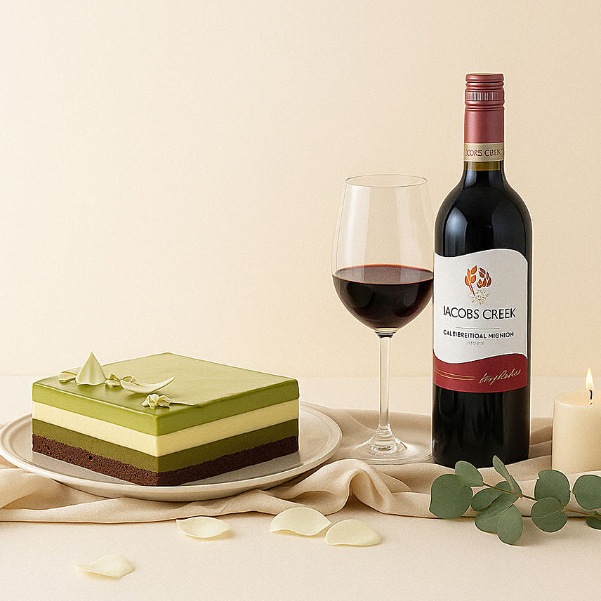 Indulge in pure luxury with our exquisite Wine and Dubai Chocolate Pistachio Cake Gift Set - featuring a premium Dubai Pistachio Luxe Cake paired with a smooth Jacob’s Creek Cabernet Sauvignon, perfect for celebrations, gifting, and sophisticated dessert moments.